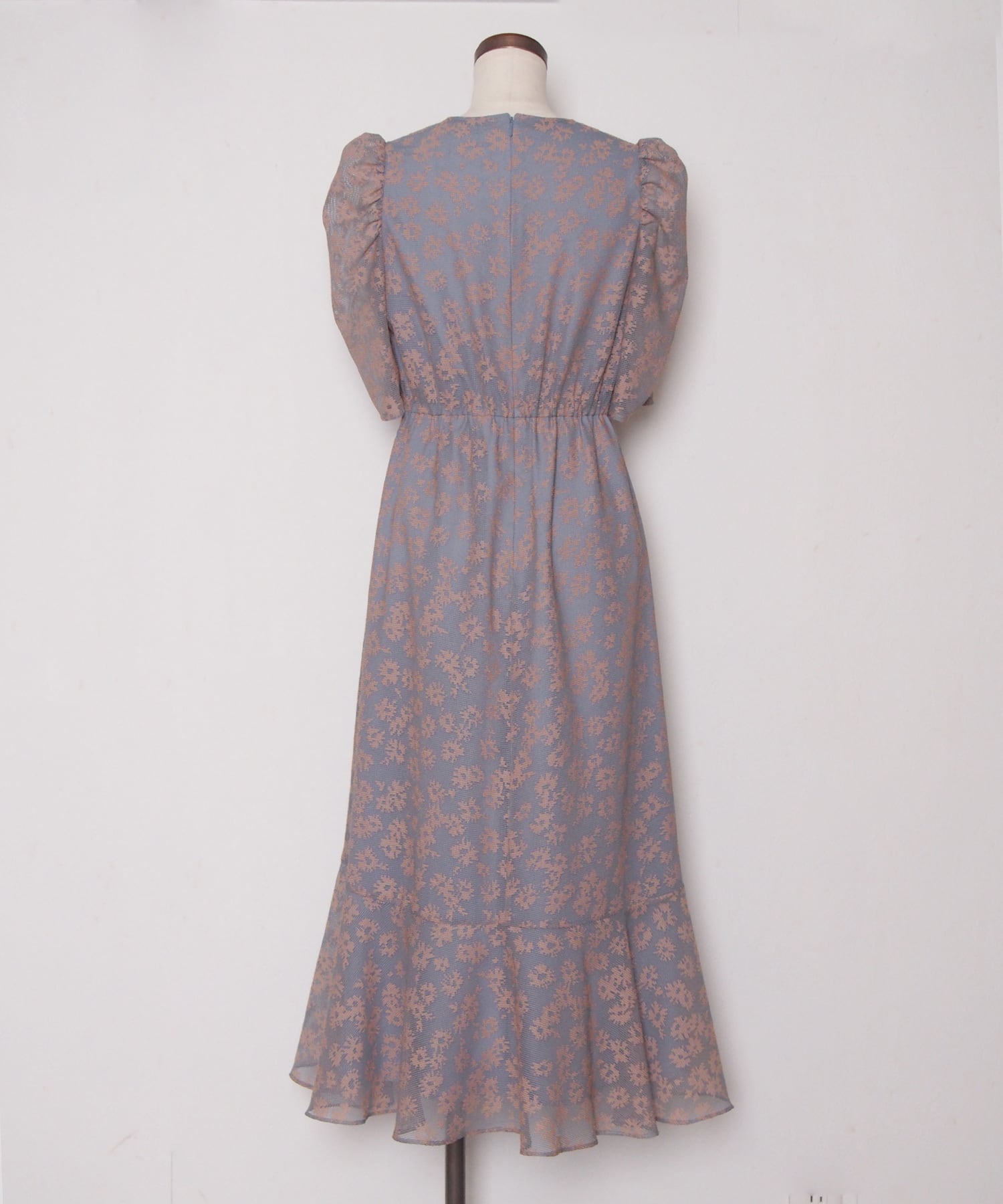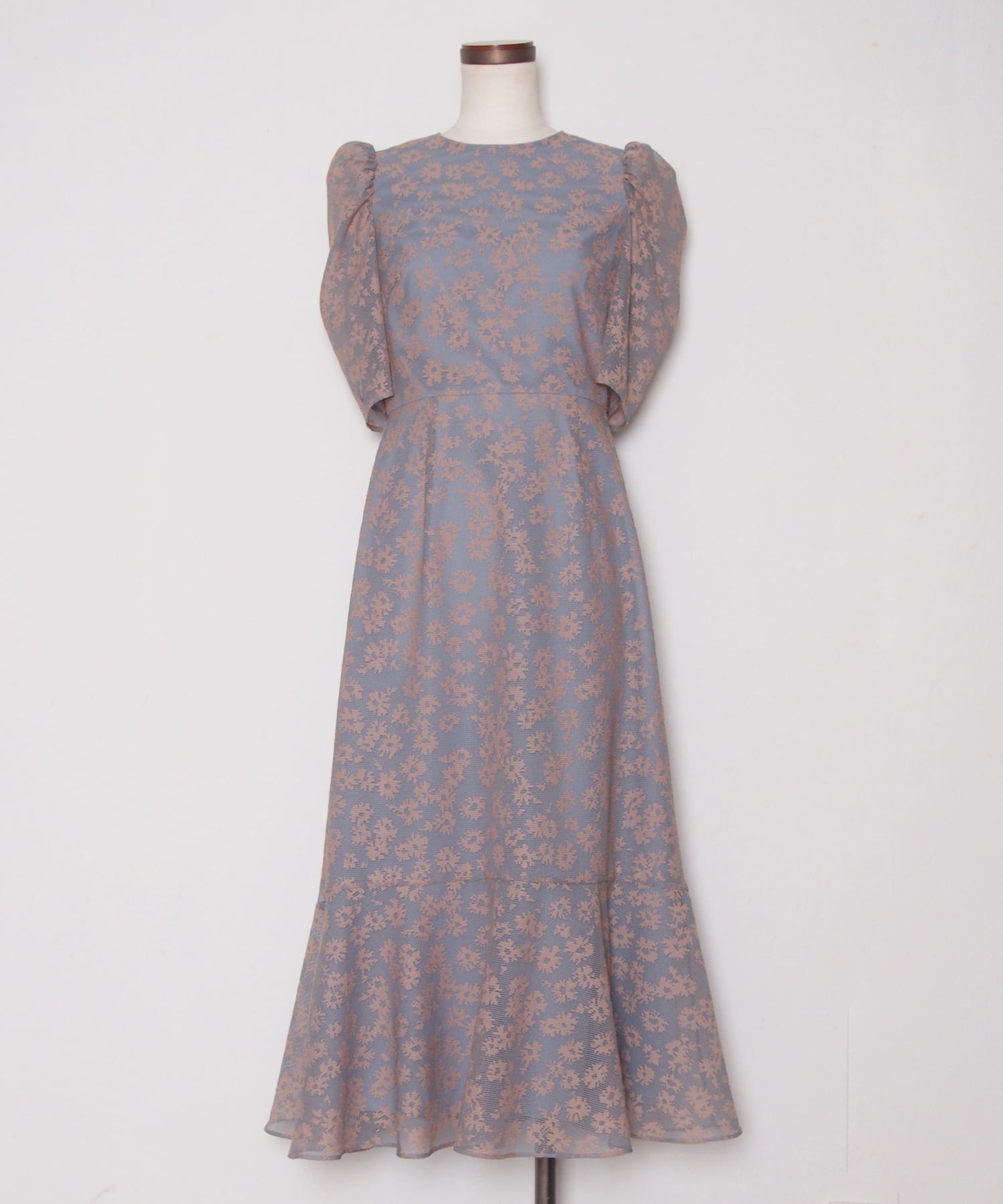 透け感のあるオパールメッシュのフラワー柄が華やかなワンピース。人気のクラシカルなフィットフレアデザイン。裏地との配色カラーがアクセントに。ウエストはバックゴム仕様でストレスフリーに着て頂けます。