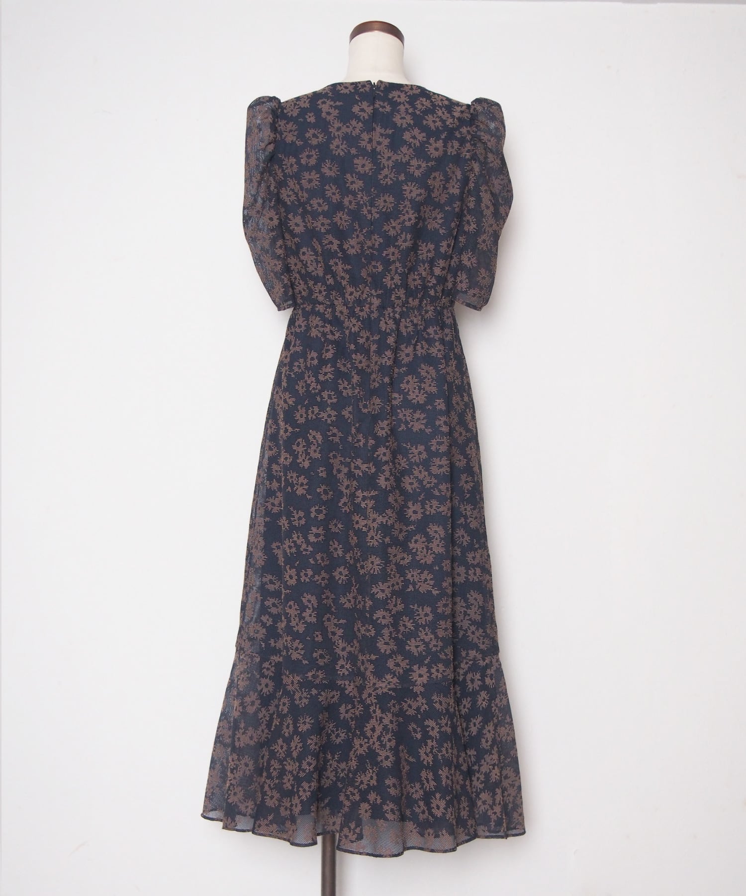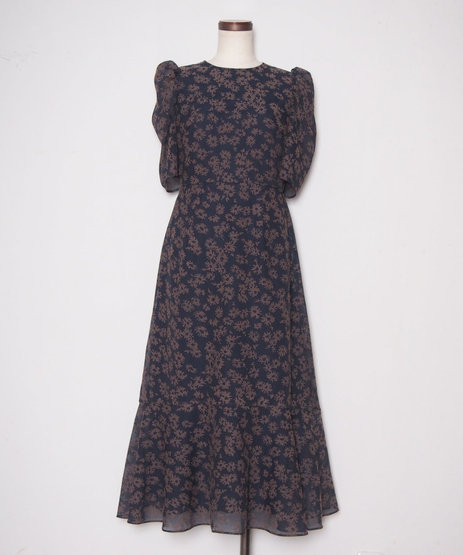 透け感のあるオパールメッシュのフラワー柄が華やかなワンピース。人気のクラシカルなフィットフレアデザイン。裏地との配色カラーがアクセントに。ウエストはバックゴム仕様でストレスフリーに着て頂けます。