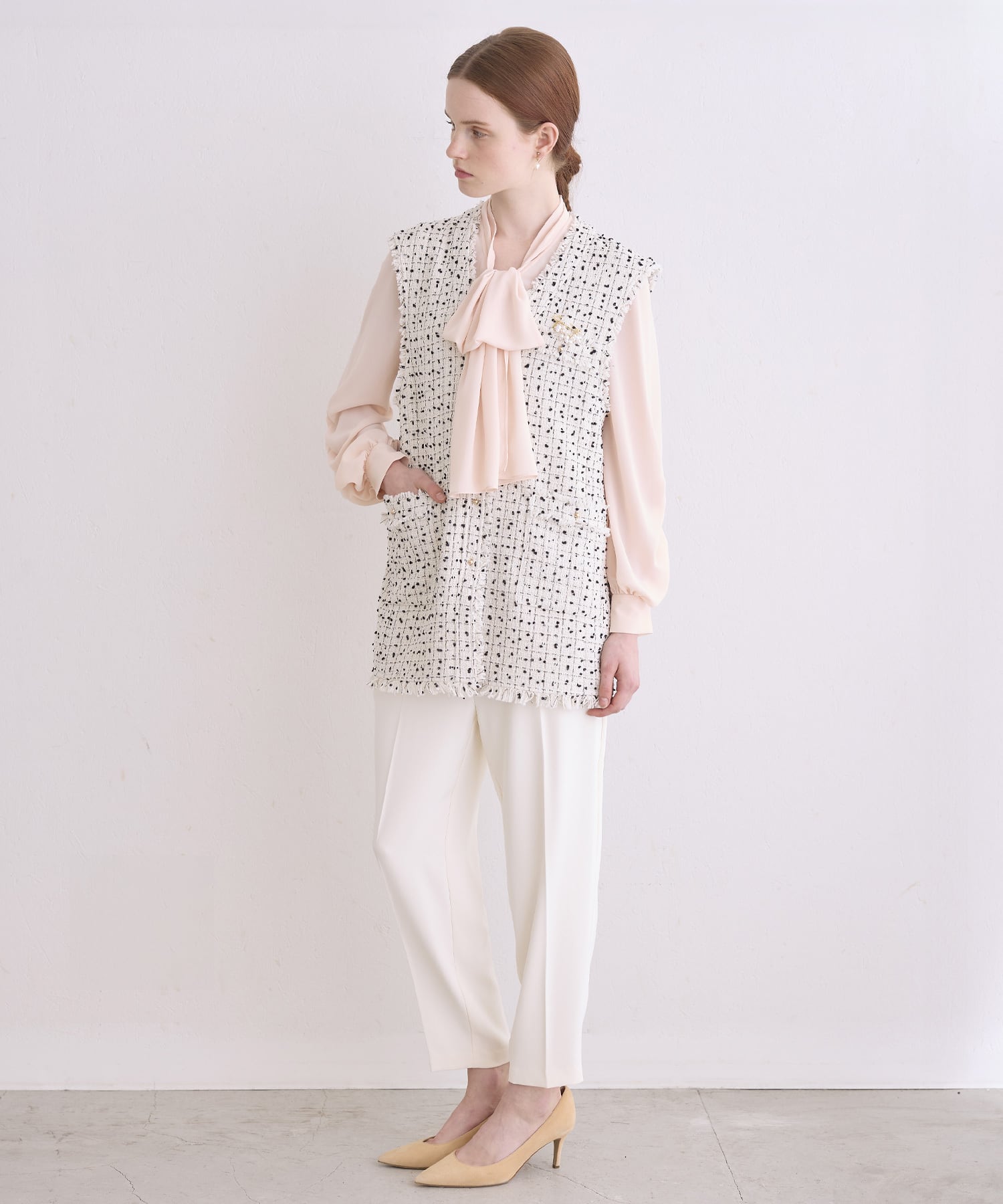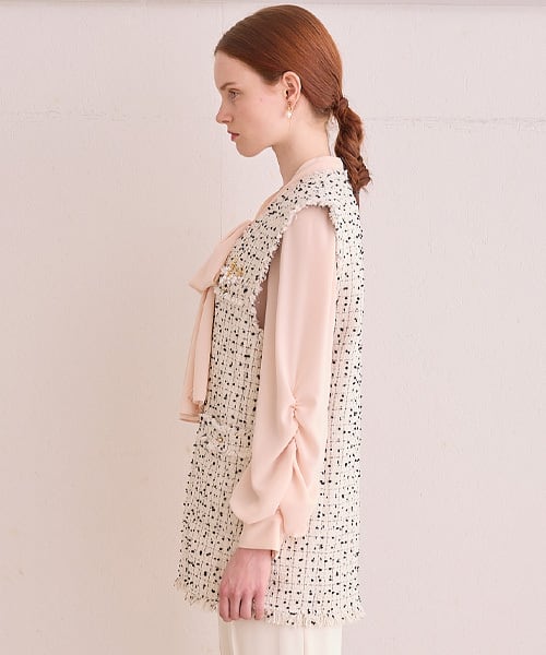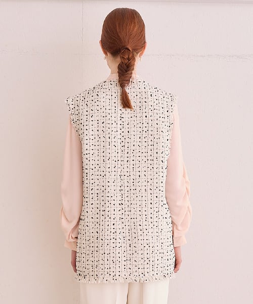 ツイード・ジレ・フリンジ・ノーカラー・アウター・フォーマル・オケージョン