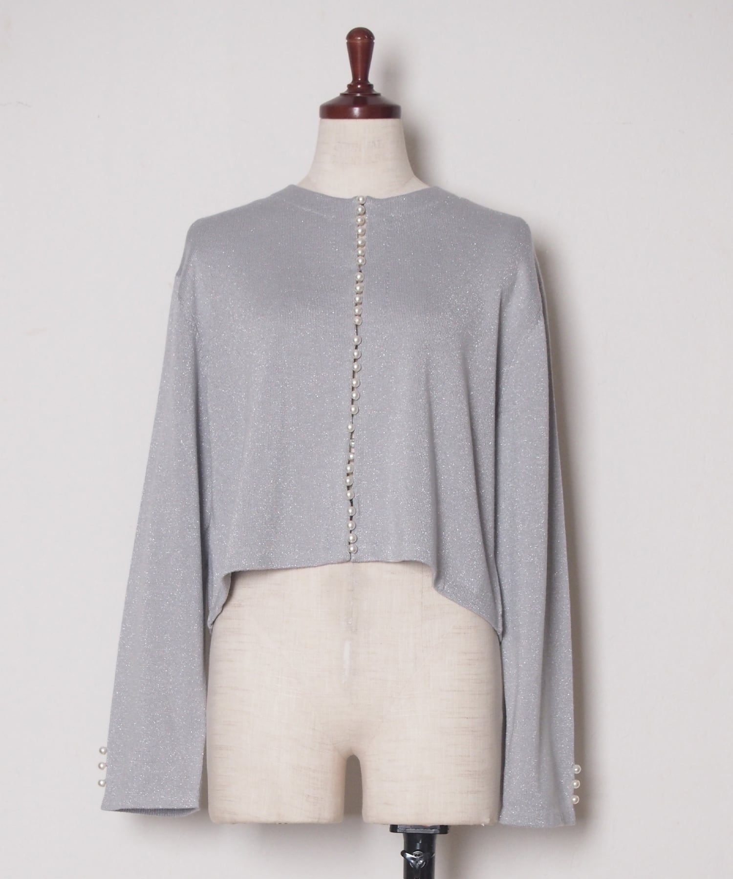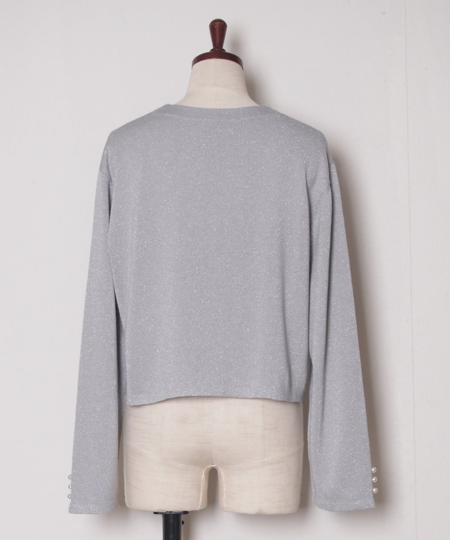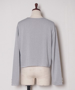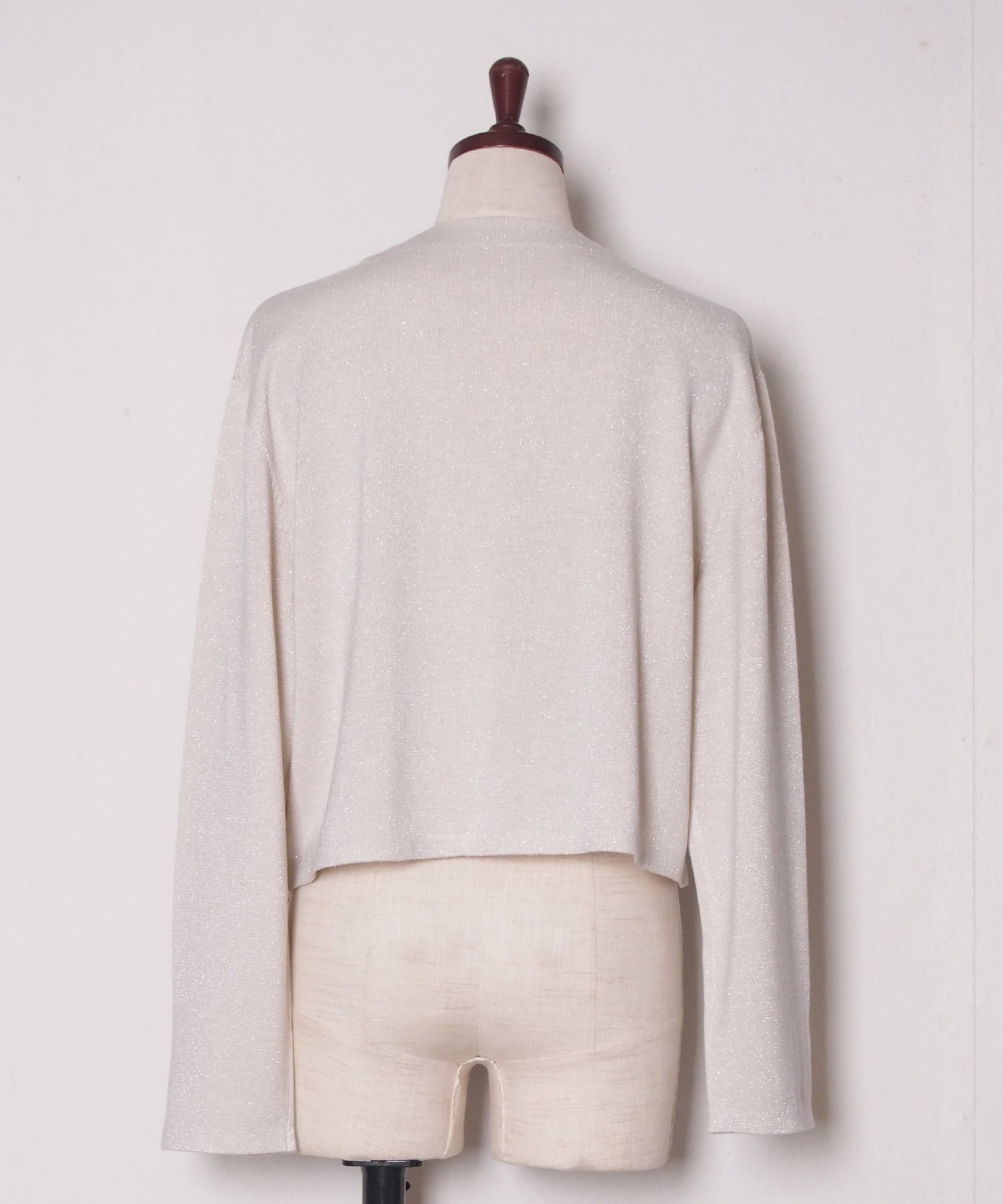 メタリック・ジャージ・パール・カーディガン・ノーカラー・ストレッチ