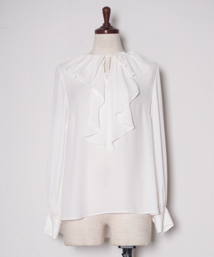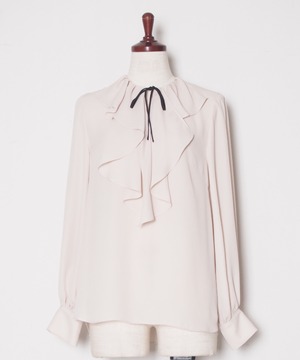 シフォン・フリル・リボン・ブラウス・フェミニンブラウス・ノーカラー