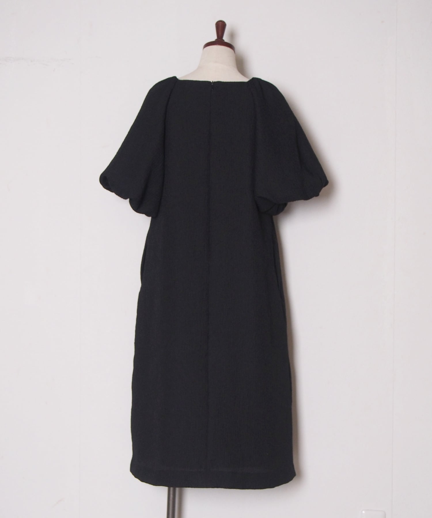 表面感のあるジャガード生地を使ったワンピース。ふんわりとしたパフスリーブデザインがアクセントに。ボディはすっきりとしたフレアシルエットで身体のラインを拾わないでスタイルアップに決まります。