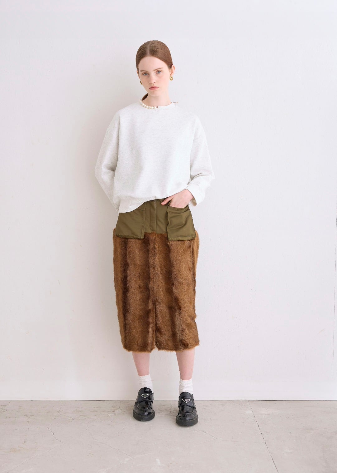 カジュアルなジャージー素材のネックに着脱可能なパールを配した、大人のカジュアルデザイントップス。程よいくらいのフォルムシルエットでデイリーユースに最適な一着。パールを外せばネックのアシンメトリーなバランスが楽しめます。
