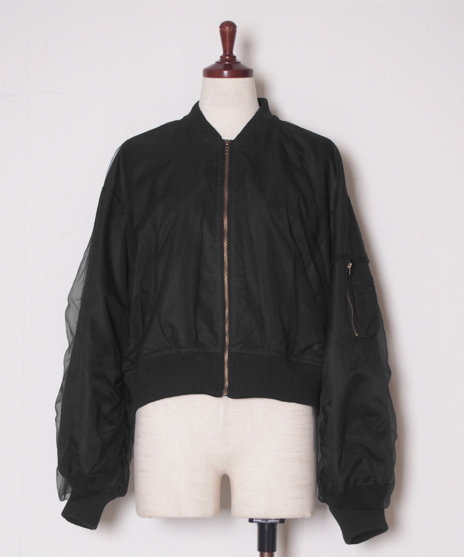 コンパクトなシルエットデザインが魅力の人気ブルゾンにチュールをあしらいフェミニンでキャッチーな雰囲気へとバージョンアップ。ボディやショート丈で野暮ったくなりません。袖はややボリューム感を出してデザイン性をプラス。大人の女性にも着やすいカジュアル過ぎない雰囲気に。