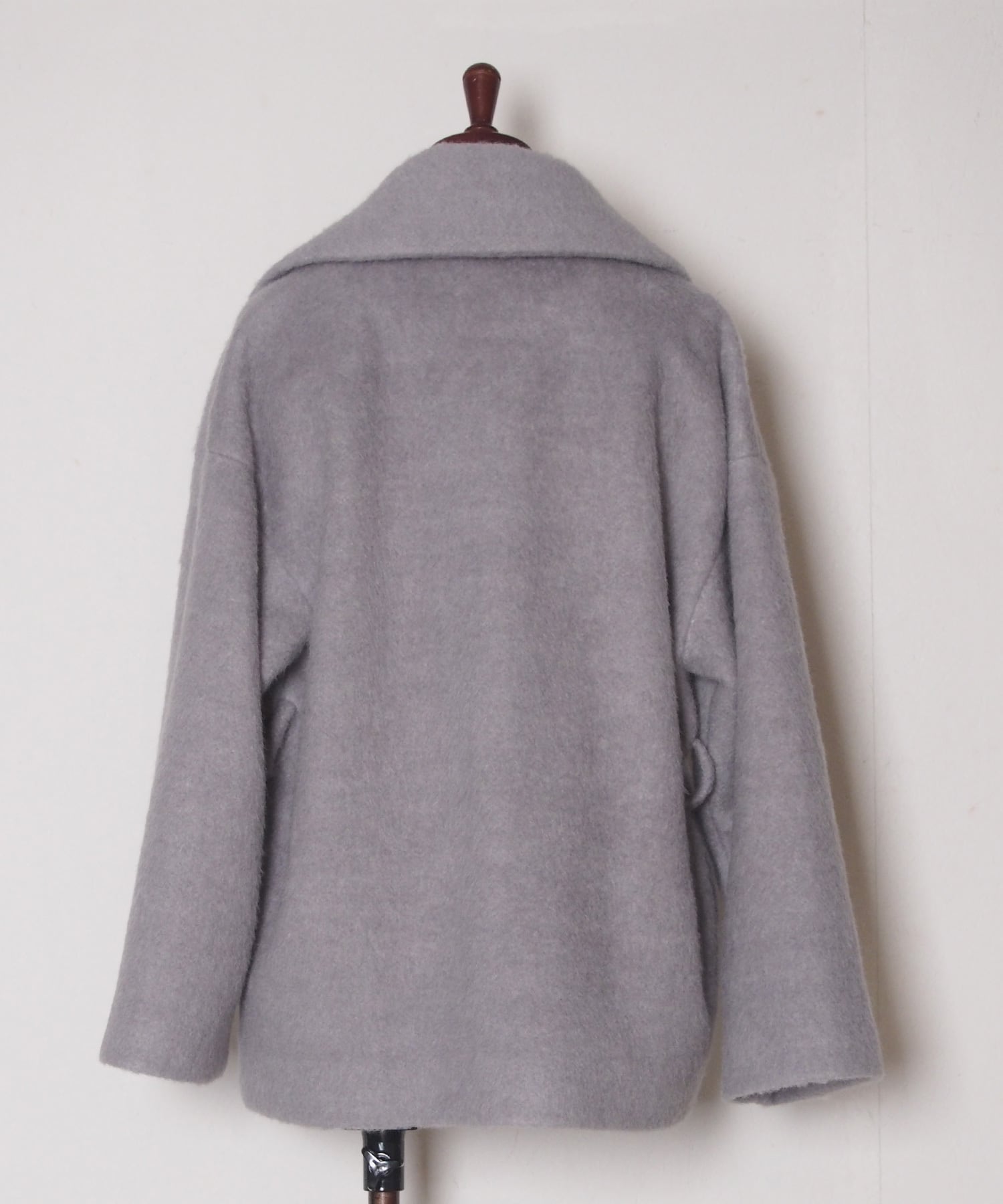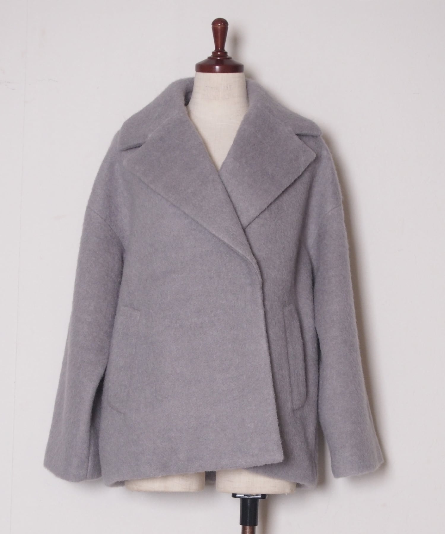 大き目のネックデザインに軽やかなショート丈でバランスの良さが着やすいウールコート。