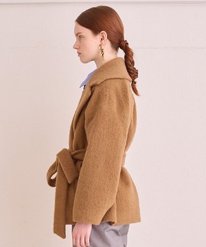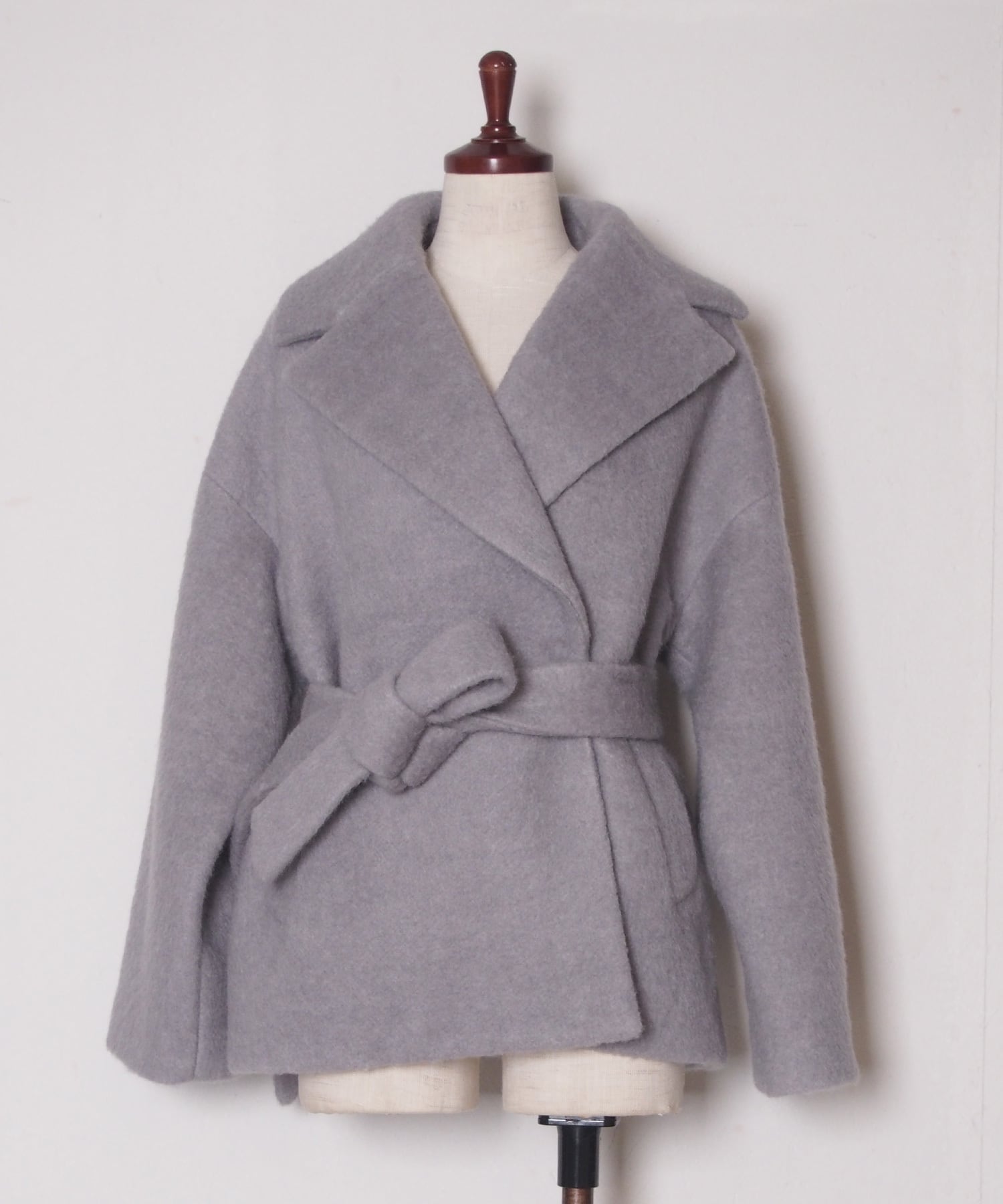 ウールコート・ウールシャギー・ベルト・ショート丈