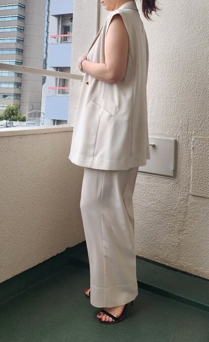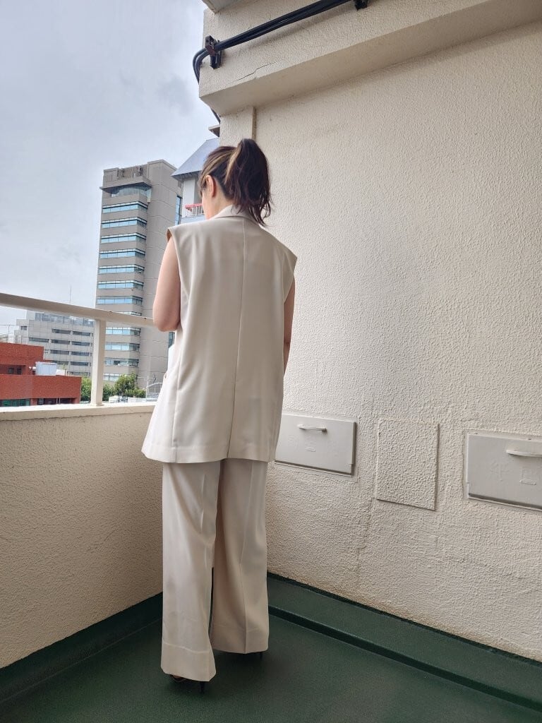 このツイルパンツは、同素材のキャミソールやジレにはもちろん、様々なトップスとの相性が抜群です。カジュアルなTシャツやブラウス、ニットとも組み合わせやすく、季節を問わず多彩なスタイルを楽しめます。シンプルなアクセサリーを加えることで、より洗練された印象を引き立てることができます。