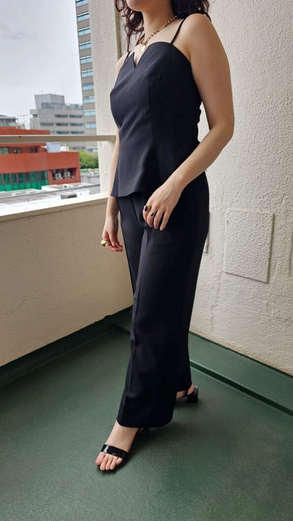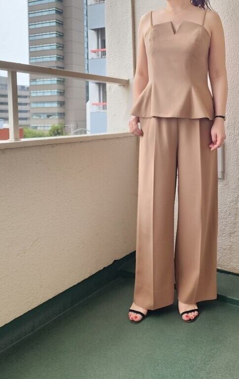 このキャミソールは、Tシャツとのレイヤードやジャケットのインナーとしても、単独で着用しても華やかさをプラスできます。同素材のパンツやスカートはもちろん、デニムとの相性も良く、カジュアルなスタイルから少しおしゃれを楽しみたい時まで、幅広く活躍します。アクセサリーやカーディガンと合わせることで、一層おしゃれ度をアップさせることができます。