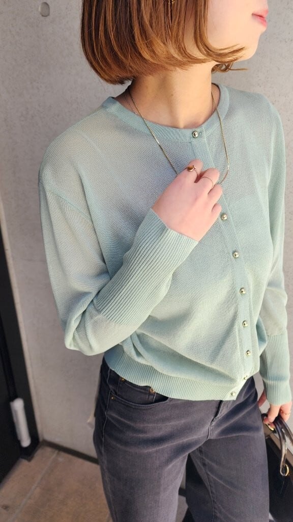 シアーニットカーディガンは、軽やかな透け感が特徴のエレガントなアイテム。柔らかな素材で仕立てられたカーディガンは、心地よい着用感を実現し、前を開けても閉じてもスタイリングに華を添えます。ほどよいフィット感と流れるようなシルエットで、女性らしさを引き立てます。