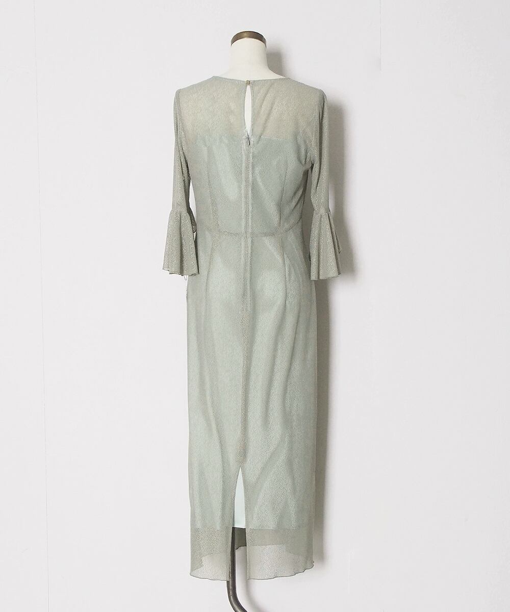 シアー感のあるレース素材に体に沿ったシルエットラインが美しいワンピース。手元を演出するベルスリーブデザインがアクセントポイントに。バストとウエストの切替がさりげなくメリハリを加えています。ジュエリーを重ねて華やかに着こなしたり、ジャケットを羽織ってセレモニースタイルとしても活躍できます。