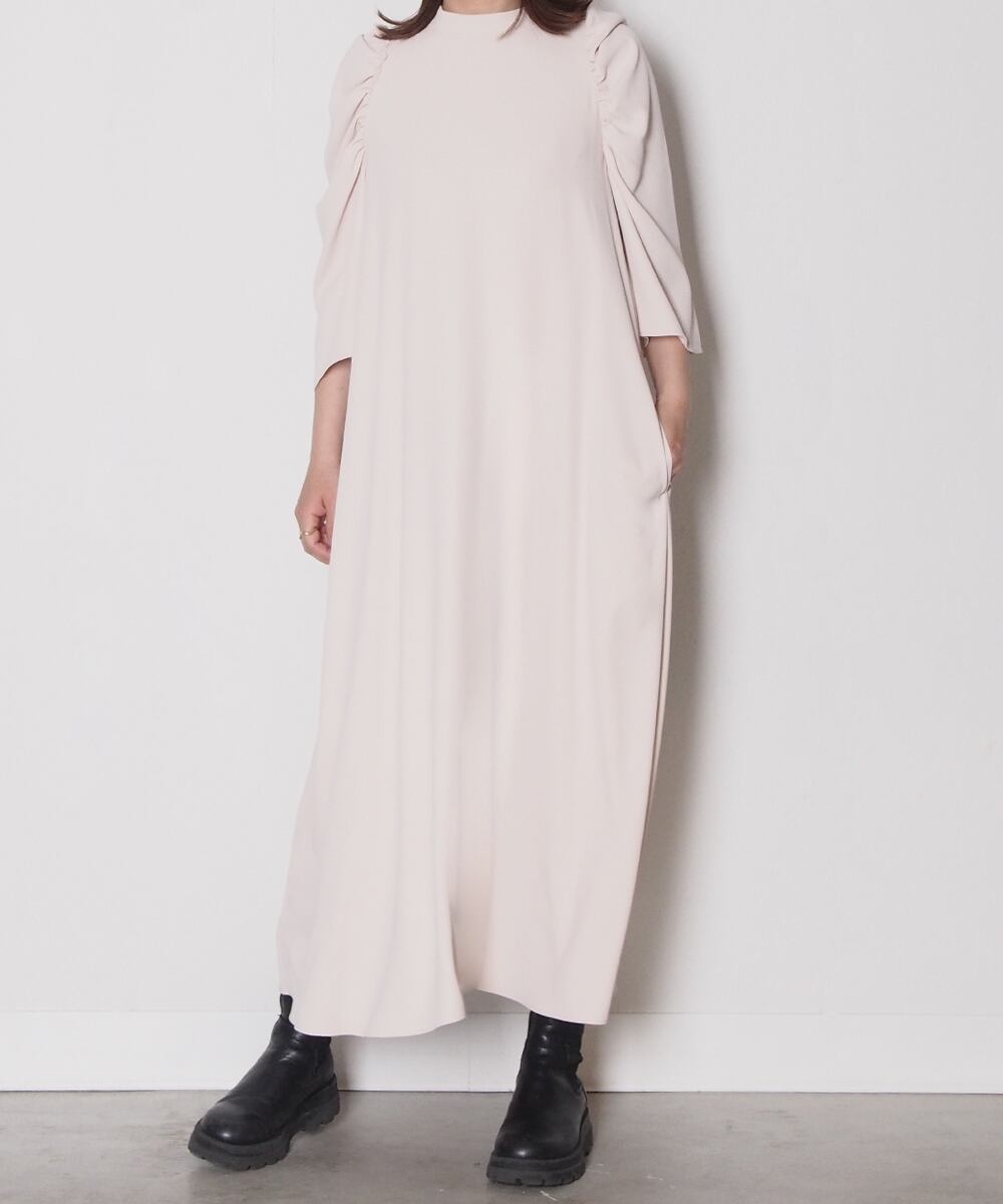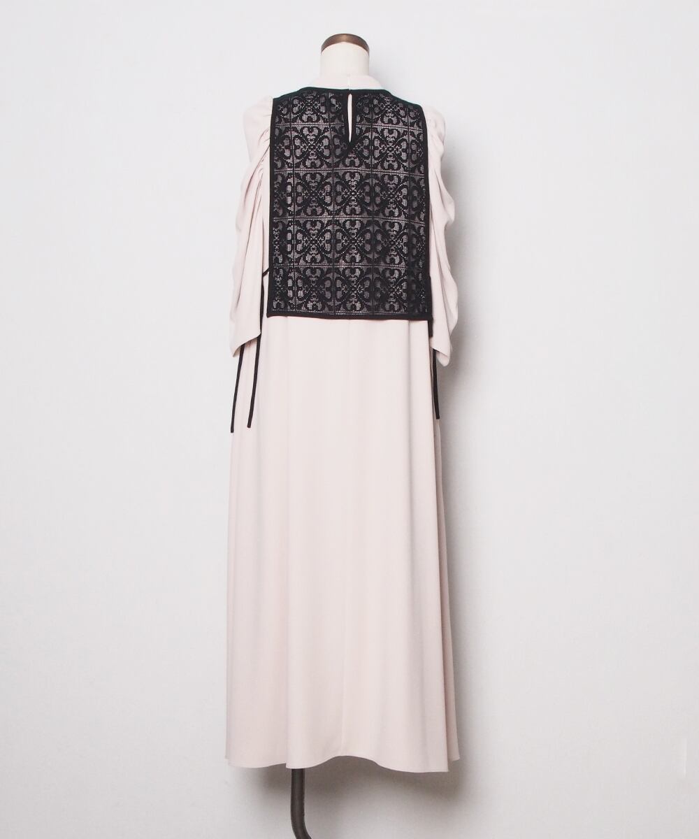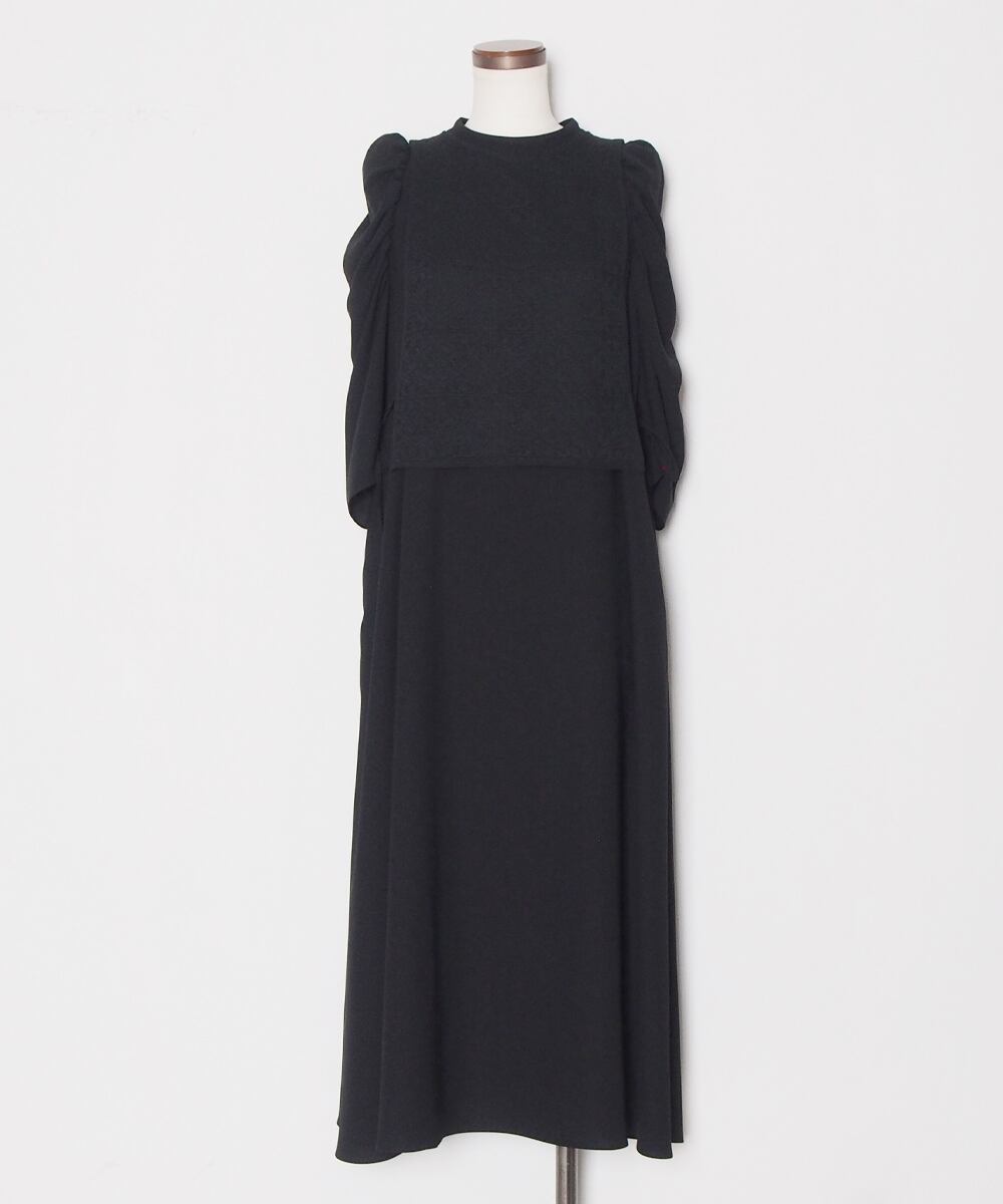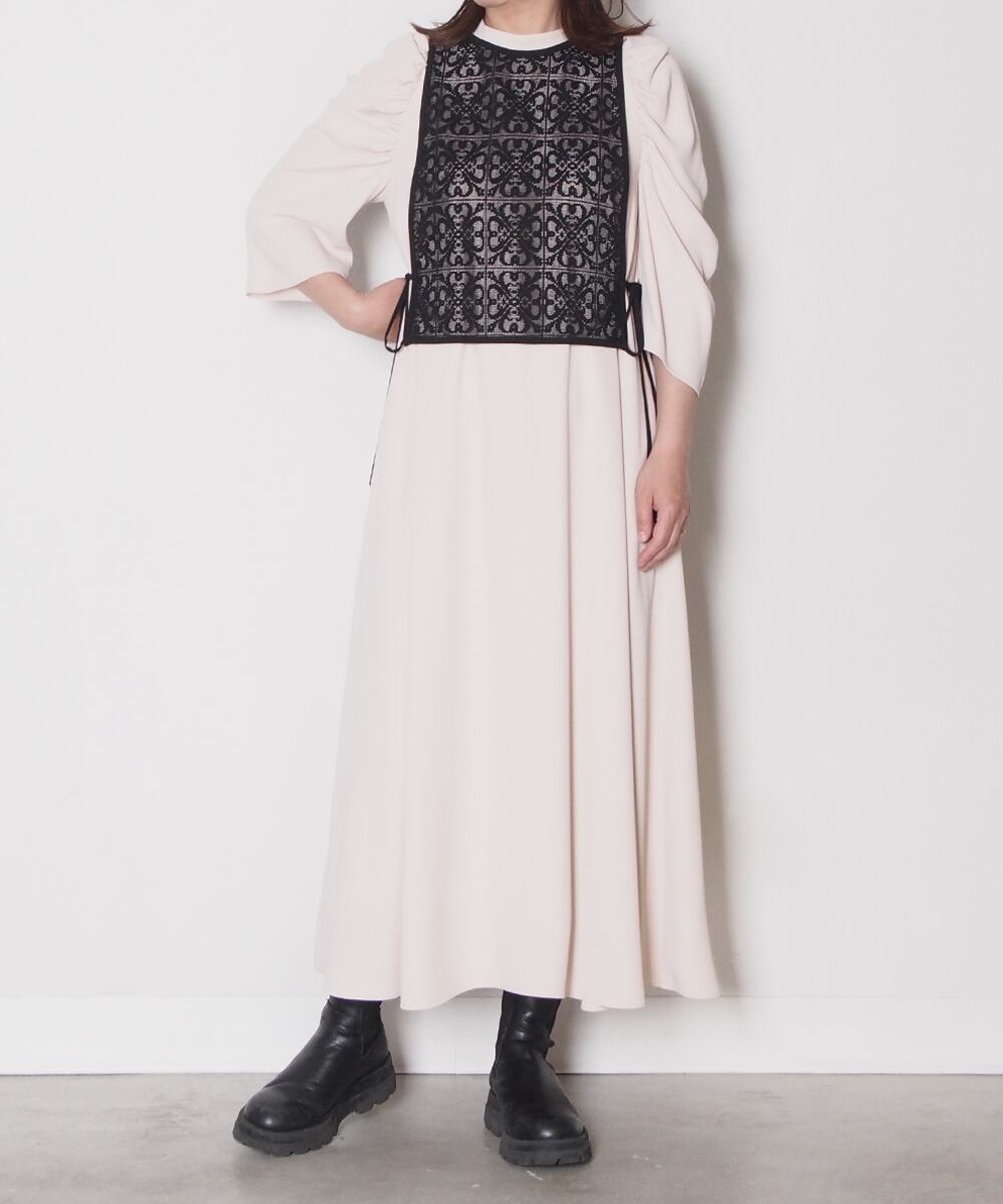 シンプルなシルエットに立体的なショルダーデザインが映えるベスト付きワンピース。エレガントなジョーセット生地は1枚でも華やかな上にプラスアイテム次第で様々なシーンに活躍できるオールラウンダーな一着です。