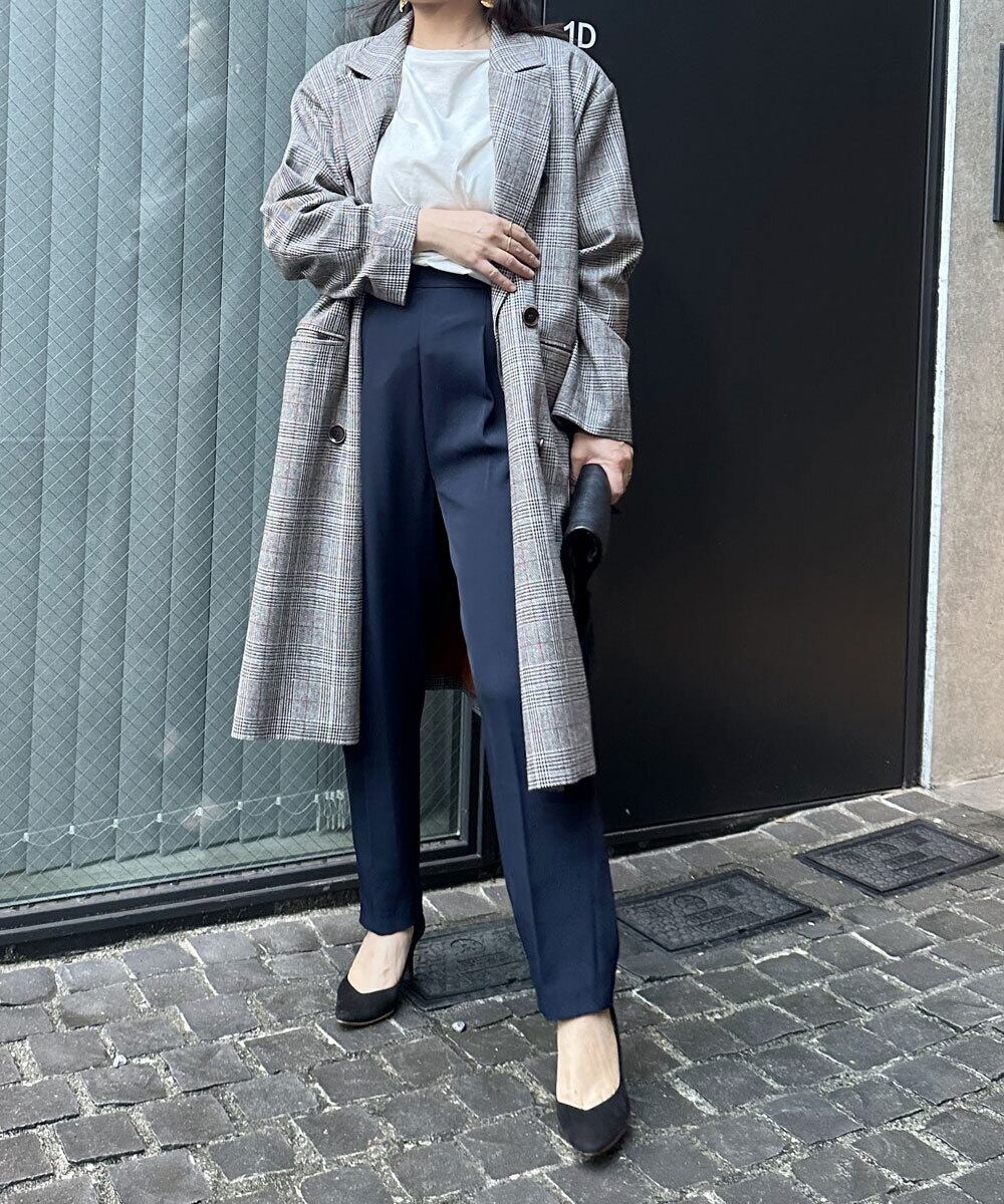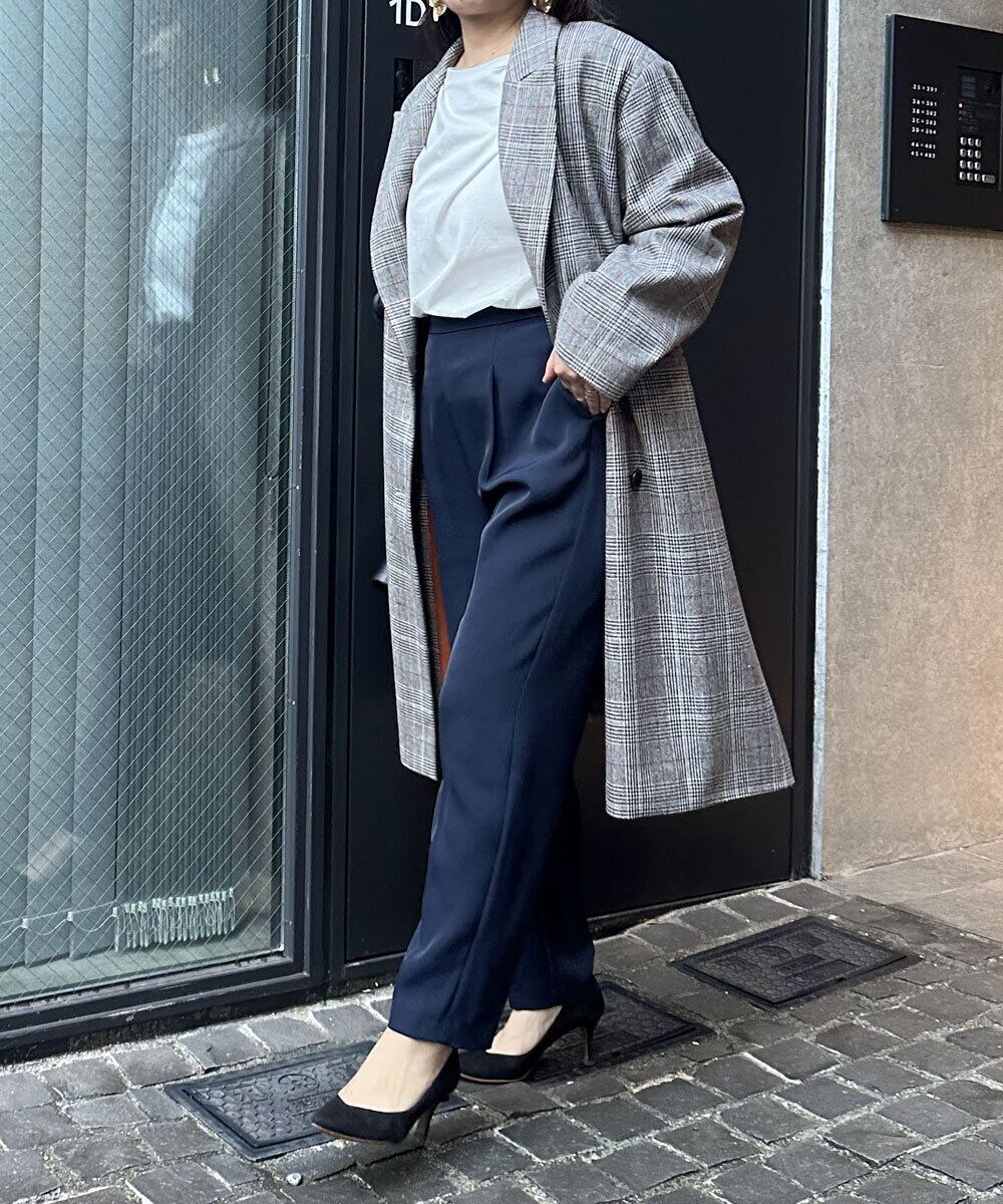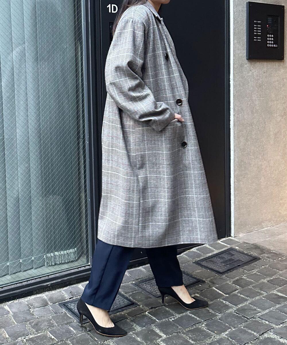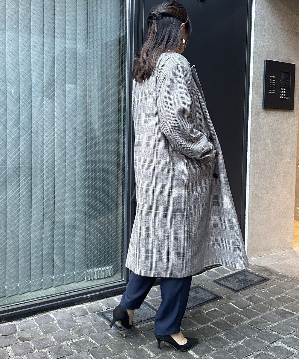 オーバーサイズのウール混ダブルコート。秋から冬まで活躍できる軽い素材。程良いくらいのボリュームショルダーで今季らしいシルエットデザインが楽しめます。